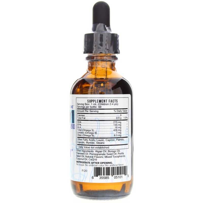 This formula contains essential fatty acids that promote healthy heart, brain, and nervous system development in children. This formula contains odorless fish oil as well as botanical oils from borage, flax, pomegranate, and coconut for a well-balanced product.