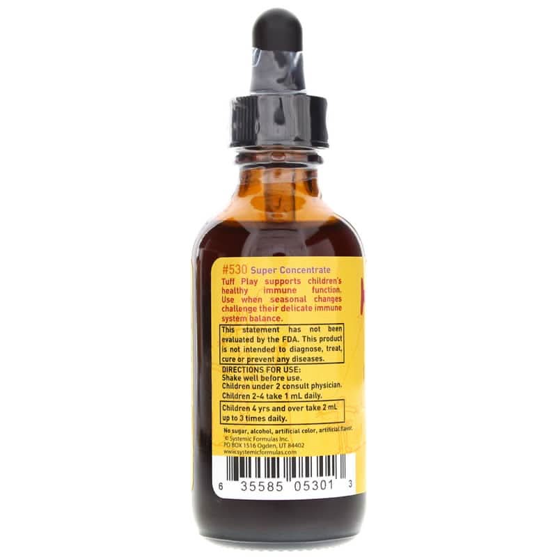 Tuff Play supports children’s healthy immune function. This product is free of additives, sugars and alcohol. Kids will love this easy to take, low dose, highly assimilable, and great tasting immune-boost.